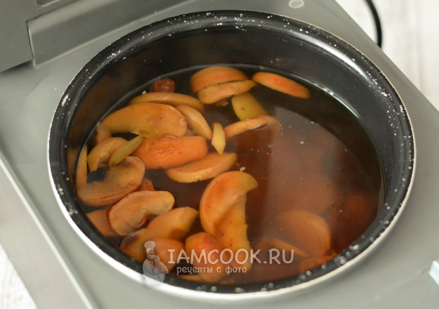 Готовьте компот из сухофруктов на программе "Суп" в течение 1 часа.