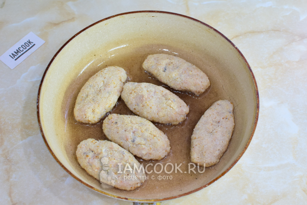 Сформируйте небольшие котлеты, обваляйте их в панировочных сухарях и обжарьте на небольшом огне по 2-3 минуты с каждой стороны.