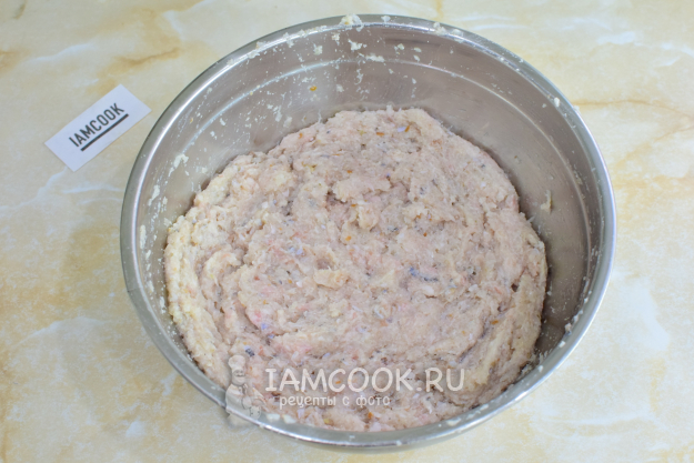 Тщательно все перемешайте и отбейте рыбную массу о дно чаши, чтобы она стала плотнее.