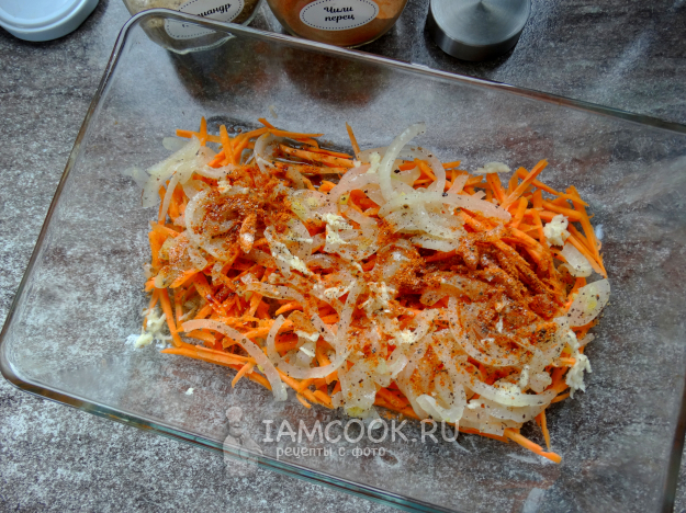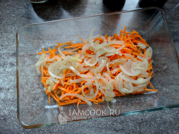 Выложить на овощи рыбу (она полежала в уксусе буквально 20 минут).