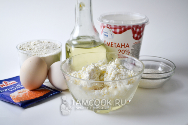 Соберите продукты для приготовления творожного печенья «Сердечки». Творог лучше взять сухой. Если он влажный, то переложите его на некоторое время в дуршлаг, чтобы стекла лишняя сыворотка.