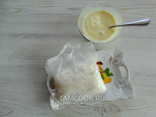 В сметану добавить воду, куркуму и немного соли, перемешать.