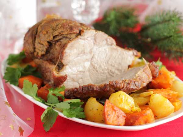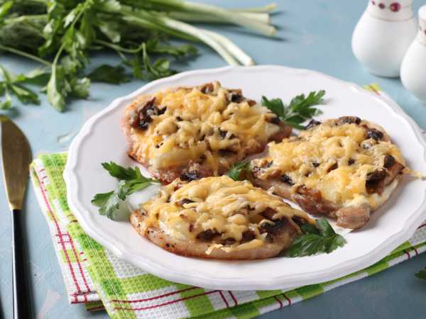 Запекайте свиную шею с шампиньонами в духовке при температуре 180°С около 40-45 минут.