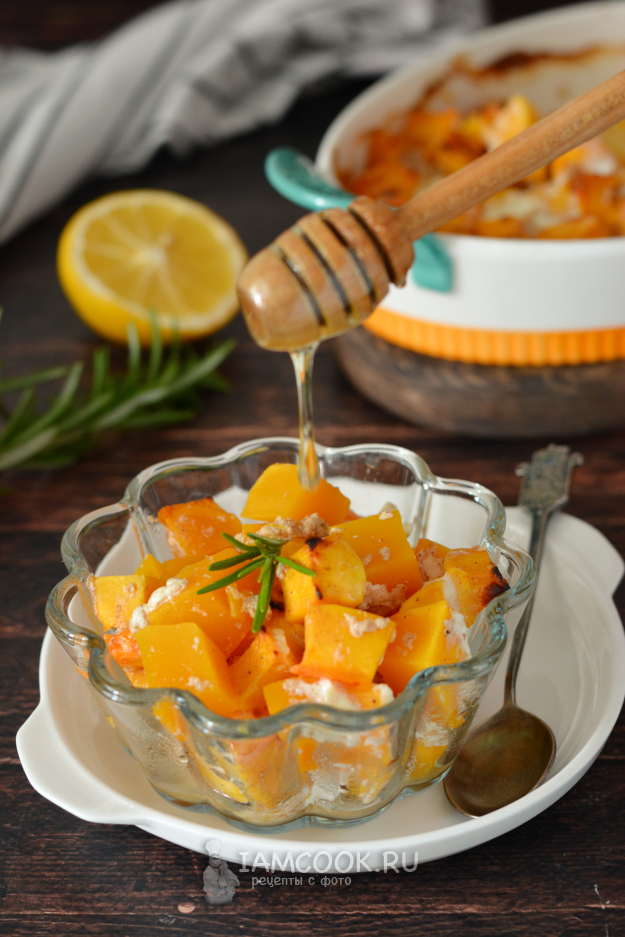 Если вы не приемлете нагревание мёда до высоких температур, то при запекании не добавляйте мёд, а полейте им уже готовую тыкву. Дополнительно вы можете посыпать готовую запечённую тыкву орешками или тыквенными семечками, будет ещё вкуснее.