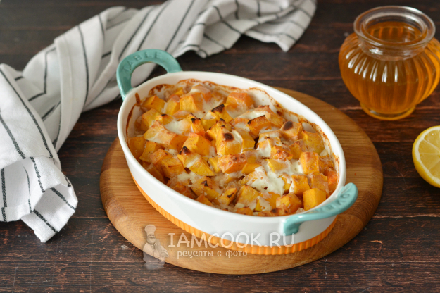 Тыква с кефиром в духовке готова. Подавайте её к столу тёплой.
