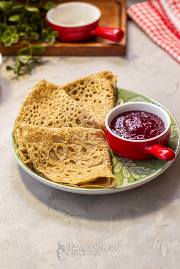 Подавайте блины с пылу с жару с джемом или сметаной либо нафаршируйте любимой начинкой. Кстати, отлично подходит к этим блинам мясная начинка.
