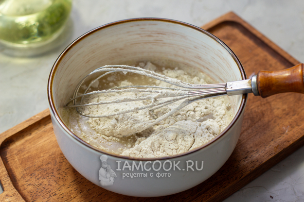 Влейте воду комнатной температуры, перемешайте с яйцом.