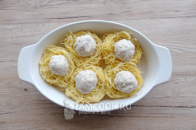 В каждое гнездо поместите фрикадельку.