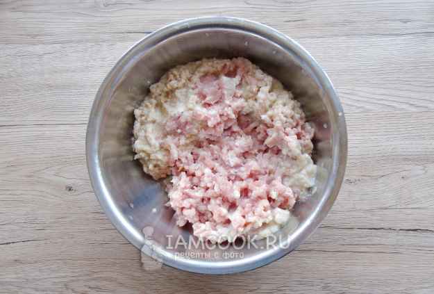 Посолите и поперчите, перемешайте фарш.