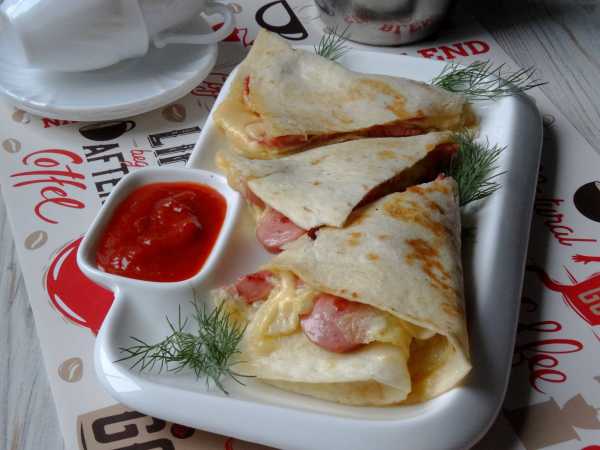 Можно взять свежие помидоры и сладкие перцы. Я использую домашнее лечо. Если нет лепешек для тако, можно взять обычный тонкий лаваш.