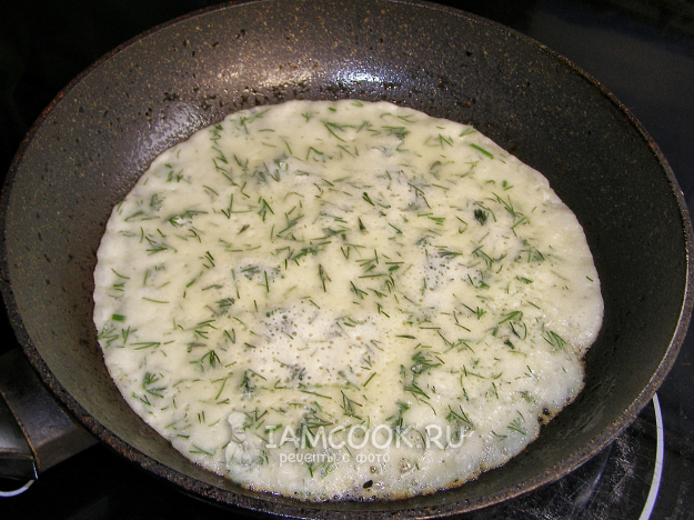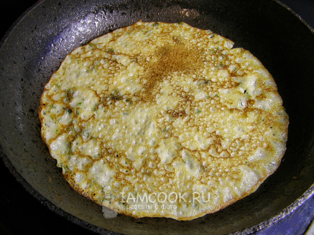 Переворачиваем блинчик лопаткой на другую сторону и обжариваем ещё примерно минуту.