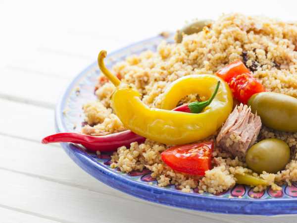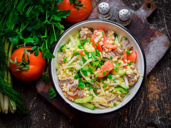 Чтобы приготовить салат с тунцом и булгуром, возьмите всё необходимое.