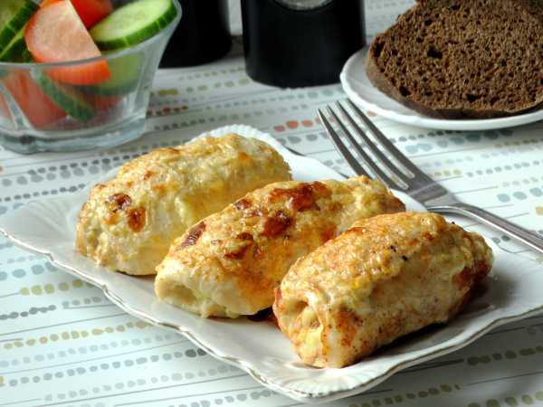 Если планируете подачу рулета в горячем виде, то дайте ему отдохнуть после духовки 10 минут, затем разверните и нарежьте на ломтики.