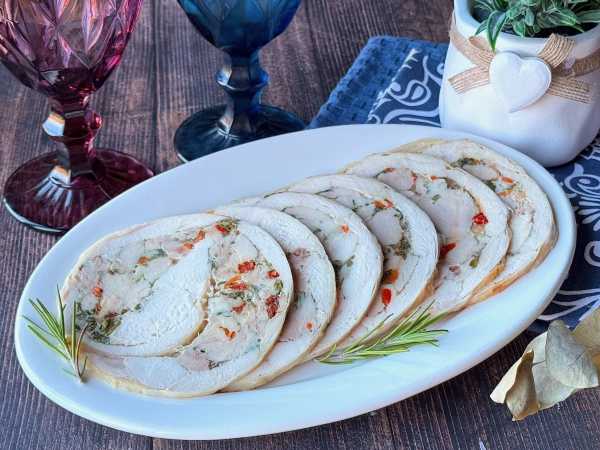 Куриный рулет с вялеными помидорами готов.