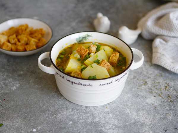 Я добавляла соль с пряностями и овощами для первых блюд. Варим суп до готовности картофеля. По времени у меня заняло это не больше 20 минут. Возможно, вам понадобится чуть меньше времени. Это зависит от сорта картофеля и насколько крупно вы его нарежете.