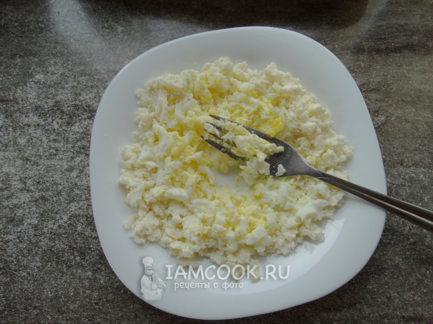 Яйцо заранее отварить "вкрутую", остудить и почистить.