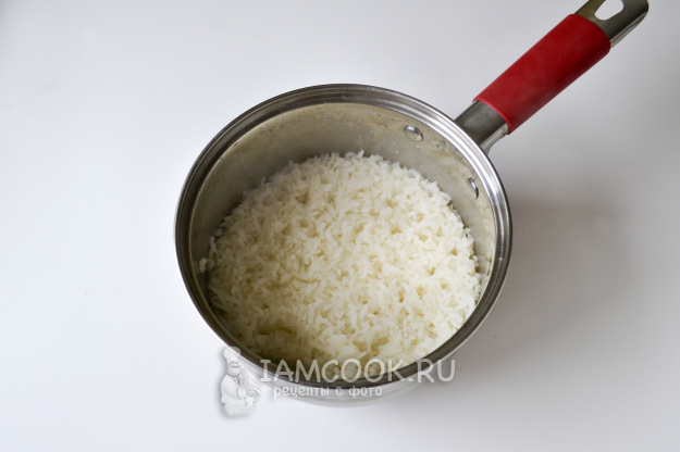 Рис промойте, положите в сотейник, залейте водой в соотношении 1 к 2, посолите и поставьте на огонь. После закипания сделайте огонь тихим и варите до полного впитывания воды. Затем плиту отключите и не открывайте крышку еще 5-10 минут. Рис должен хорошо развариться.