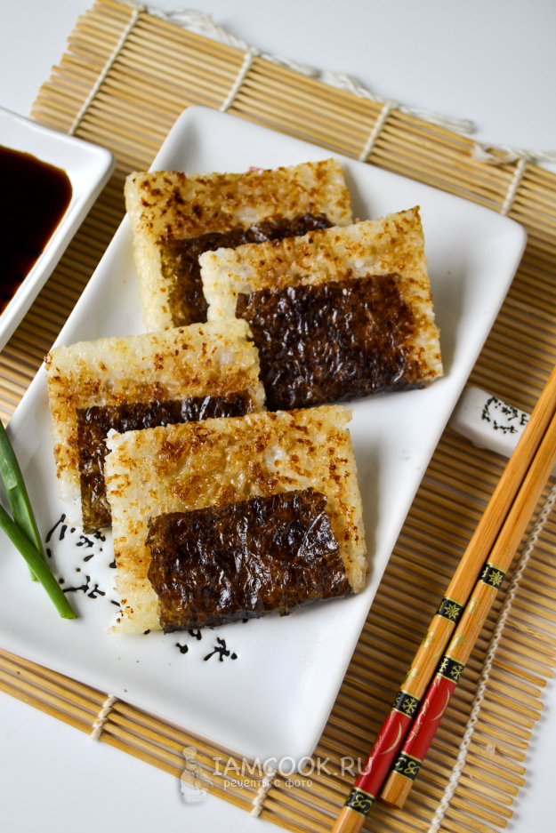 Хрустящие кусочки риса можно обмакивать в соевый соус.