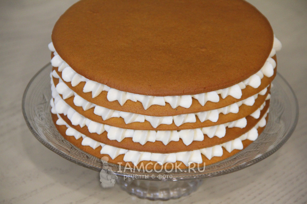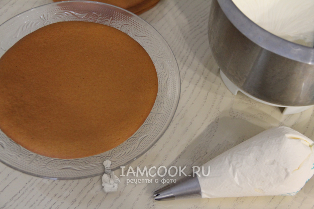 Можно коржи просто смазать кремом, а я отсадила крем через кулинарный мешок с насадкой.