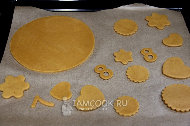 Из раскатанного теста с помощью вырубки для пряников вырезать пряники любого размера и формы.