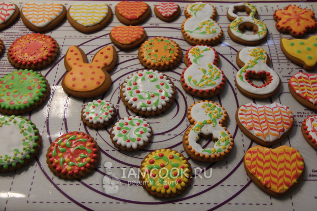Готовые коржи и пряники остудить. Я для украшения пряников использовала сухую смесь для айсинга, развести смесь по инструкции и подкрасить по желанию пищевыми красителями.