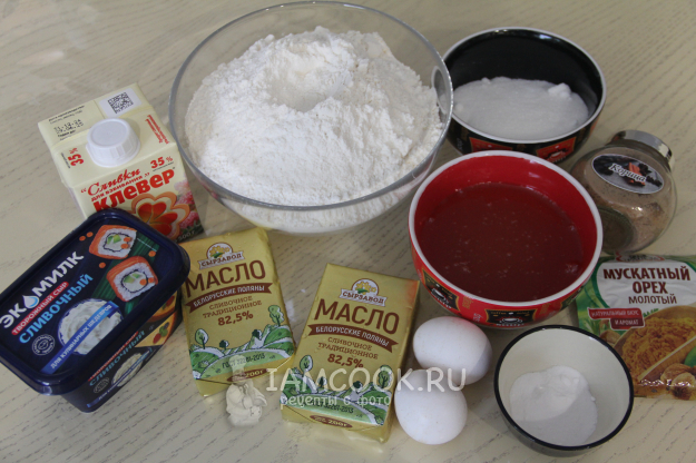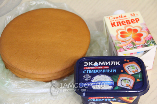 Взбить сливки с сахарной пудрой до мягких пиков, затем добавить творожный сыр и взбить до стойких пиков.