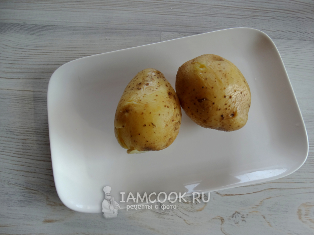 Картофель хорошенько промыть, отварить в мундире до мягкости.