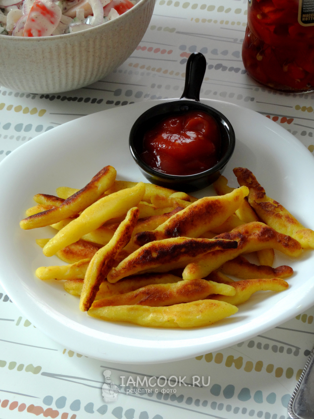 В сковороде растопить масло. Выложить картофельную лапшу в один слой.