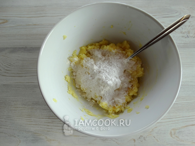 Подбавлять муку до тех пор, пока тесто не сформируется в единый колобок.