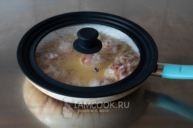 Вернём на огонь и доведём ОБЯЗАТЕЛЬНО ПОД КРЫШКОЙ до готовности (лёгкое покоричневение бортиков, растаявший сыр и запах готового теста).