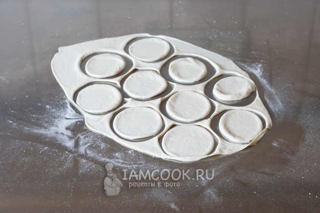 На обсыпанной мукой поверхности тонко раскатаем тесто для пиццы.