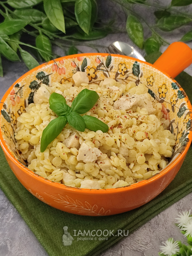 Подавайте птитим с курицей в сливочном соусе с пылу с жару). По желанию украсьте блюдо зеленью, я присыпала розовым перцем ещë))). Приятного аппетита 🤗!