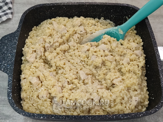 Соберите ингредиенты для приготовления пасты птитим с курицей в сливочном соусе.