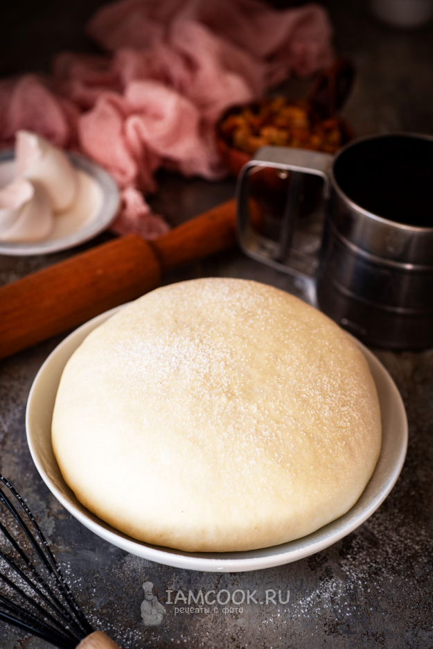 Оставьте тесто подходить на 1-1.5 часа в теплом месте под кухонным полотенцем.