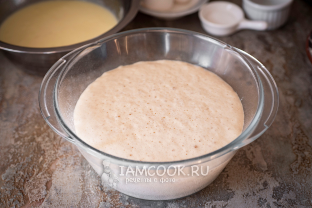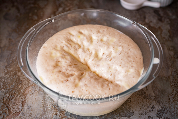 Опара к этому моменту уже созрела - заметно увеличилась в объеме, приобрела пузырчатую структуру.