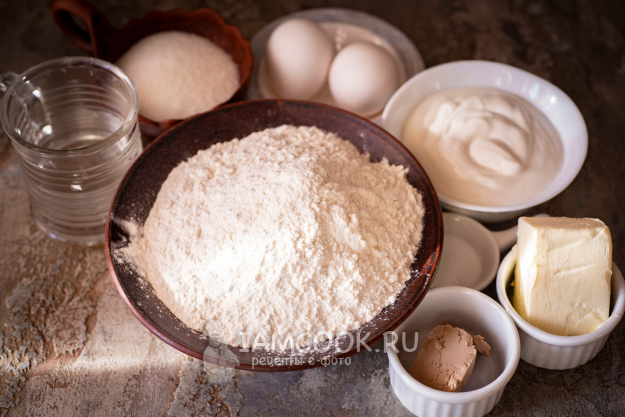 Все ингредиенты для приготовления дрожжевого теста на сметане для булочек соберите по списку.
