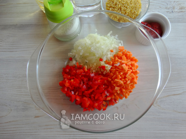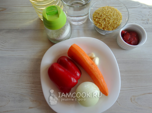 Булгур с овощами в духовке готовить будем из таких ингредиентов.