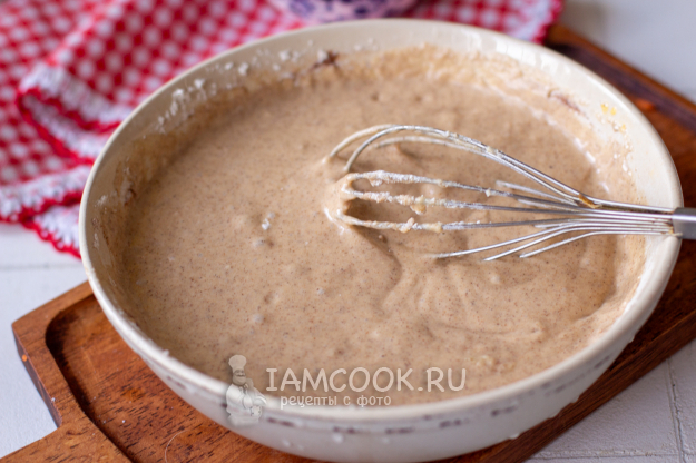 Перемешайте венчиком, чтобы получилось однородное тесто по консистенции как густая сметана.