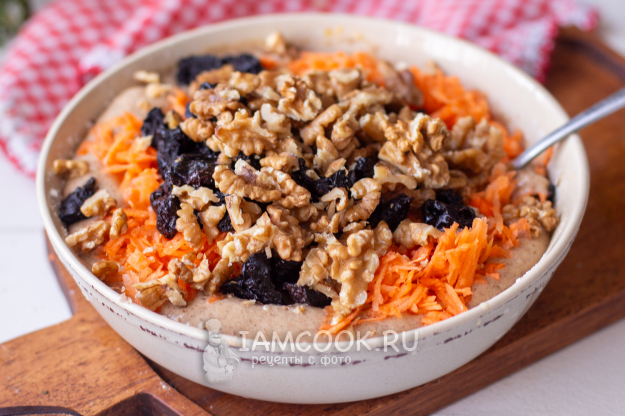 Соберите необходимые продукты для приготовления диетического морковного кекса. Для его приготовления нам понадобится свежая морковь. Советую обратить внимание и выбрать сочный, с ярко-оранжевым цветом овощ. Также для кекса нам понадобится мука - я выбрала из зеленой гречки, люблю выпечку именно с ней. Но если у вас ее нет, то можно заменить на пшеничную цельнозерновую, рисовую или овсяную. В качестве подсластителя у меня сахарозаменитель "Стевия" и также для сладости я добавила чернослив.