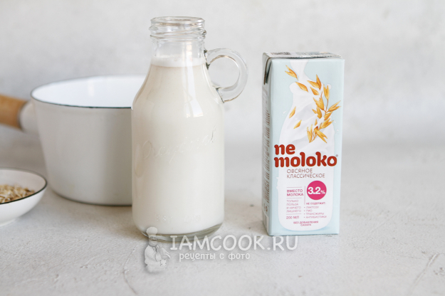 Теперь займемся приготовлением постного соуса. Для соуса подойдет любое растительное молоко, которое вы можете купить или приготовить дома самостоятельно. Я варила соус уже из готового овсяного молока, но на примере покажу, как быстро и легко его можно также приготовить в домашних условиях.