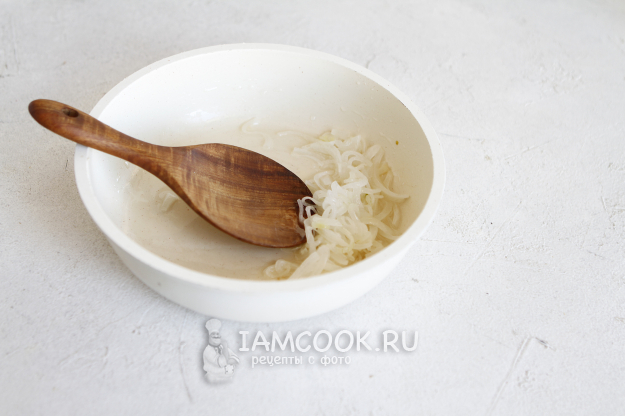 Одну головку репчатого лука нарежьте произвольно и припустите на растительном масле до мягкости.