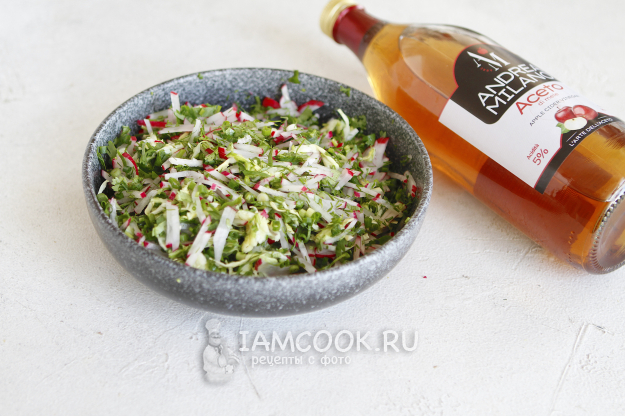 Добавьте яблочный уксус и еще раз хорошо перемешайте.