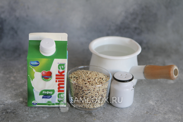 Набор продуктов в этом рецепте минимальный, давайте соберем его и приступим к приготовлению киноа с кефиром.