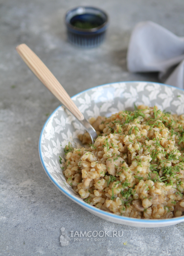 Готовить перловку с курицей мы будем на сковороде. Можно, конечно, крупу отварить отдельно, а потом добавить в сковороду к курице, но не советую. При длительной варке перловка напитается ароматами, каша получится еще вкуснее. Степень мягкости крупы вы можете контролировать самостоятельно. Мне нравится, когда перловка получается мягкой-мягкой, и зернышки ее буквально лопаются при надкусывании. Я добиваюсь такого результата благодаря длительной варке. Количество воды указываю в рецепте приблизительное, так как часто ее подливаю по мере выкипания.