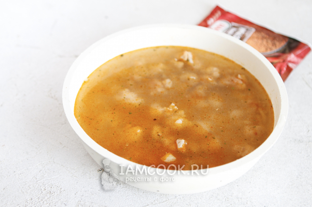 Влейте воду или овощной бульон. Я люблю добавлять бульоны... Бульоны - вообще, моя отдельная любовь: мясной, овощной, куриный готовлю постоянно. В этот раз я добавляла бульон из сельдерея, ну до чего же ароматным он получился.