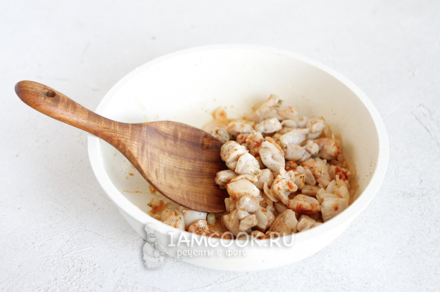 Вкус блюда будет зависеть от выбранных специй. Здесь можно просто обойтись солью и черным молотым перцем, но я рекомендую добавить и другие специи. Можно сушеный чеснок, орегано, смесь любимых трав, зиру, кориандр. Возможно, у вас дома найдется смесь готовых специй для курицы или мяса, можно использовать и такой микс. Одно могу сказать, не бойтесь экспериментировать и проявлять фантазию. Уверена, результат вас приятно порадует.