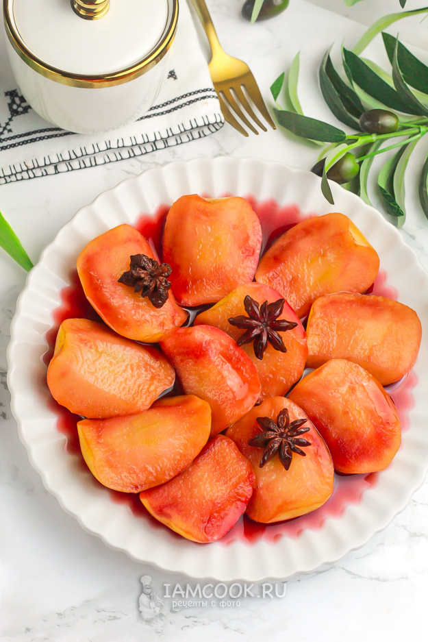 Томите примерно 8-10 минут на умеренном нагреве - за это время яблоки впитают в себя вино, но не потеряют свою форму.