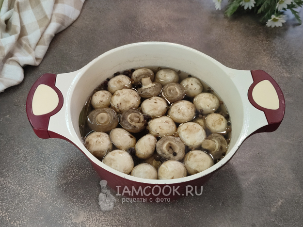 Когда вода закипит, выложите в кастрюлю промытые грибы, варите на среднем огне минут 10-15, в зависимости от их размеров. После чего снимите с огня.