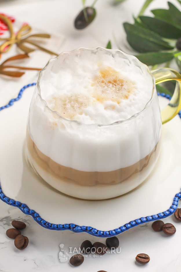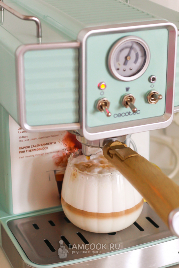 Добавьте кофе во взбитое молоко, чтобы пена осталась на поверхности.