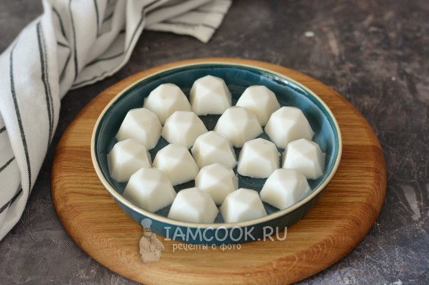 Как только кокосовое желе застыло, оно готово. Извлеките его из формочек и подавайте к столу.
